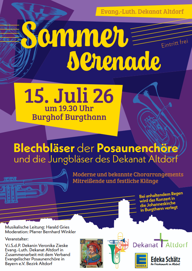 Bei anhaltendem Regen wird das Konzert in die Johanneskirche in Burgthann verlegt